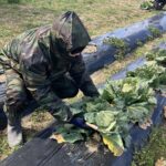 梱包作業中です。新鮮で青々としていますね。